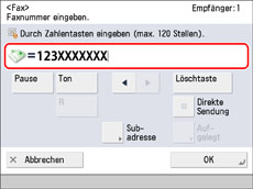 definieren. Sie können auch mehrere Faxnummern nacheinander eingeben und das Original in einem Durchgang an mehrere Empfänger senden (Rundsendung).