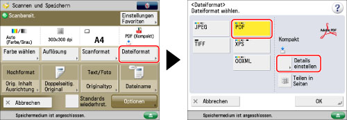 Sie können die Optionen [Verschlüsseltes PDF] nicht festlegen, wenn [PDF auf PDF/A formatieren] aktiviert ist. (Vgl. Abschnitt "PDF auf PDF/A formatieren".)