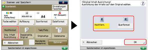Querformat bezieht sich auf ein Original in horizontaler Ausrichtung, die kürzeren Ränder befinden sich links und rechts auf dem Original.
