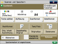 Zum Abbrechen des Scanvorgangs berühren Sie die Taste [Abbrechen] oder betätigen Sie die Taste