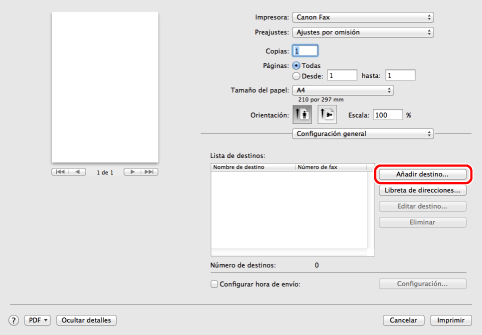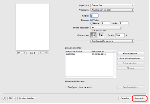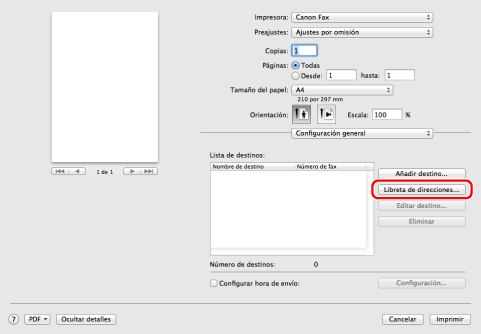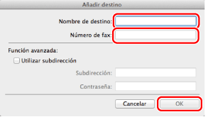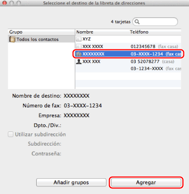 Si añade un grupo como destino, el número que haya designado como número principal en [Editar] > [Editar lista de distribución] de la libreta de direcciones (contactos) de MAC OS se convierte en el destino.