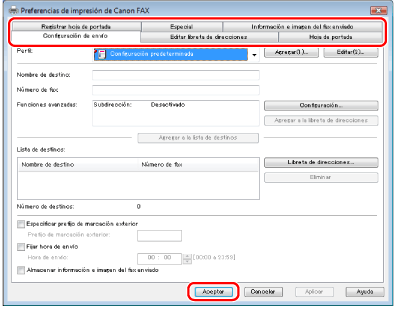 Al enviar un fax, puede cambiar las opciones prefijadas en la pantalla del controlador de fax siempre que sea necesario.