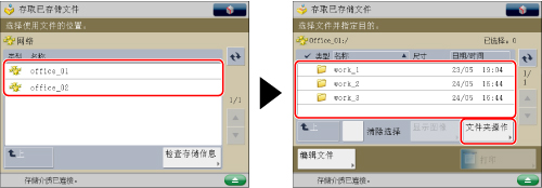 选择所需的存储位置→选择所需的文件夹层级→按[文件夹操作]。