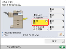 如果预先将信息存储到本机中,则添加到每个纸盒中的纸张类型的图标就可以显示在纸张选择屏幕上。(请参阅“注册/编辑自定义纸张类型”)
