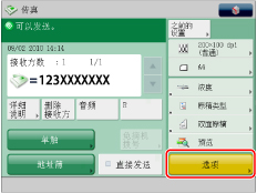 如果[限制新接收方]中的[传真]设置为“打开”,则无法输入新接收方。在这种情况下,通过使用“本地地址簿”、“远程地址簿”、“LDAP服务器”或“单触按钮”选择已存储的接收方。(请参阅“限制发送到新地址”)