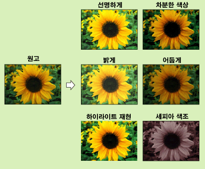 이 설정을 사용하여 좀 더 선명한 색조 및 높은 채도로 복사할 수 있습니다.