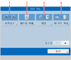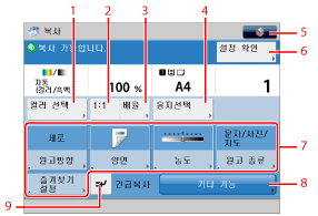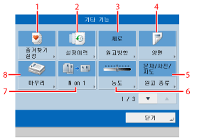 다른 설정을 지정할 때 누릅니다. 복사 기능 범위를 구성할 수 있습니다.