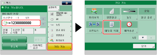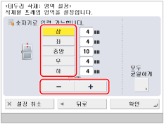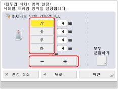 터치 패널 화면에 나타나는 원고 용지 크기에 대한 원고 테두리 삭제 모드만 설정할 수 있습니다.