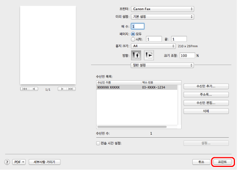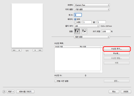 이미 추가한 수신인 이름 또는 팩스 번호를 변경하려면 [수신인 목록]에서 수신인을 선택하고 [수신인 편집]을 클릭합니다..