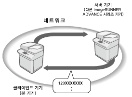 이 기기를 서버로 사용하여 리모트 팩스 기능을 사용할 수는 없습니다. 팩스 보드와 서버 기능이 설치된 다른 imageRUNNER ADVANCE 시리즈 기기가 필요합니다.