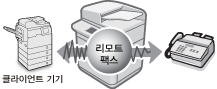 이 기기가 전화 회선에 연결되어 있지 않아도 리모트 팩스 기능과 서버 기기를 사용하여 팩스를 송/수신할 수 있습니다. 리모트 팩스 송신 사용에 대한 자세한 내용은