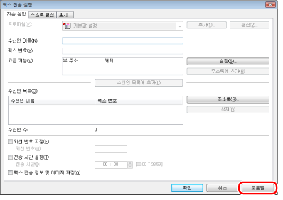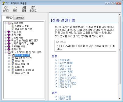팩스 드라이버 화면에서 [도움말]을 클릭하여 도움말을 표시할 수 있습니다.