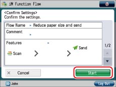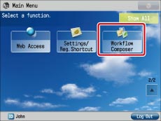 ]/[모두 표시]를 누릅니다. [ ]/[모두 표시]를 누른 후에도 [iW Function Flow]가 여전히 표시되지 않으면 iW Function Flow가 시작되었는지 확인하십시오. |