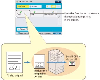 예를 들어 원고 축소한 후 스캔 데이터를 PDF 파일로 변환하고 그 PDF 파일을 이메일로 전송하는 것이 한개의 버튼으로 가능합니다.