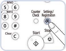 (설정/등록) → [환경 설정] → [네트워크] → [TCP/IP 설정] → [DNS 설정] → [DNS 서버 주소 설정]을 누릅니다. |
