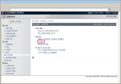 전송 설정을 지정하려면 관리자로 로그인해야 합니다.