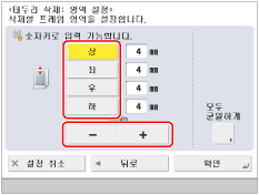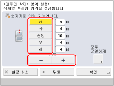 터치 패널 화면에 나타나는 원고 용지 크기에 대한 원고 테두리 삭제 모드만 설정할 수 있습니다.
