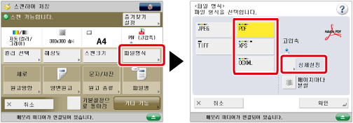 [PDF] 또는 [XPS]를 파일 형식으로 선택한 경우, [고압축]과 [OCR (문자인식)]을 동시에 설정할 수 있습니다.
