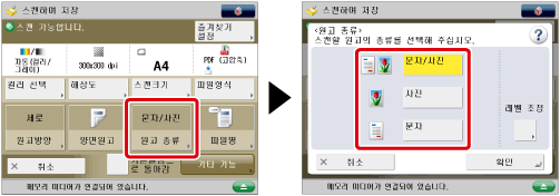 원고가 OHP 필름인 경우, 원고 종류를 선택하고 → 원고에 가장 적합한 레벨로 농도를 조절하십시오.