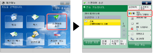 ![]() 수신인이 I-팩스 주소 또는 I-팩스 주소를 포함하는 그룹 주소인 경우 원고가 항상 흑백 모드로 스캔되어 송신됩니다.