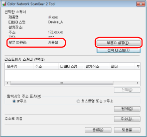 Color Network ScanGear 2 Tool을 시작하고 → 스캐너를 선택합니다.