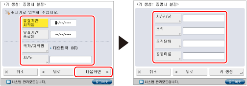 키 페어 이름으로 'Device Signature Key'(PDF 또는 XPS 파일에 디지털 서명을 추가하기 위한 키 페어에 사용됨) 또는 'AMS'(액세스 제어를 위한 키 페어에 사용됨)를 지정할 수 없습니다.