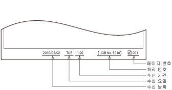 수신된 문서 하단에 수신 날짜, 수신 요일, 수신 시간, 처리 번호 및 페이지 번호 인쇄 여부를 설정할 수 있습니다.