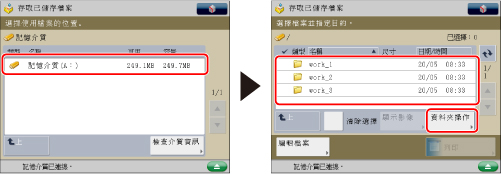 選擇所需的記憶介質→選擇所需的資料夾層級→按[資料夾操作]。