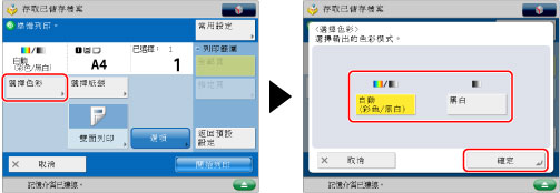 可以在[變更預設設定]中儲存色彩模式。(請參閱「變更/初始化影印功能的預設設定」)