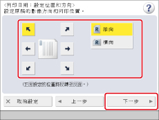 若設定[頁碼編排]、[影印套編排]、[列印日期]或[浮水印]中的任兩個在同一位置列印,則按