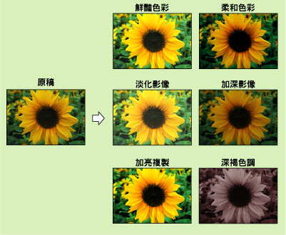 只需單觸某一按鍵即可以透過選擇影像外觀進行影印或列印。可以使用以下六種選項。