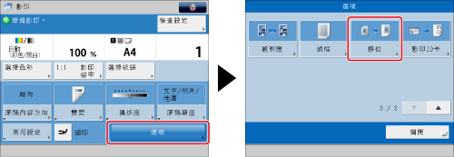 若選擇[透過位置],並且原稿和影印紙張的尺寸相同,同時影印倍率設定為100%,則不能移動原稿的影像。