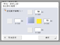 若選擇[透過數字鍵],影本上的原稿影像可能會切去一部分。裁切量取決於原稿的尺寸、影印紙張的尺寸和指定的移動量。