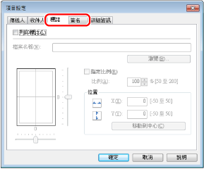 在[傳送設定]標籤中所指定的目的地資訊列印在封面頁中。
