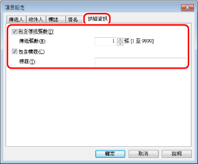 根據您附加的封面頁方式,可確定同時傳送的收件人數目。有關詳細資訊,請參閱說明(請參閱「檢視說明」)。