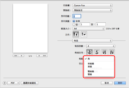若要為每頁添加框線,從[框線]選擇線條類型。