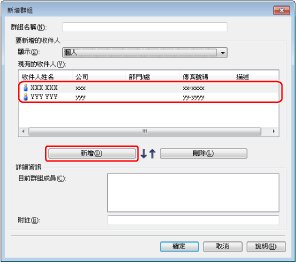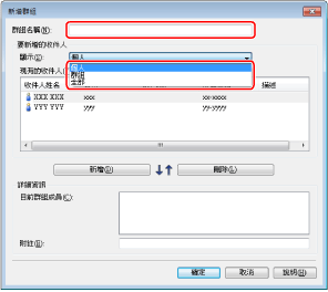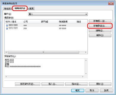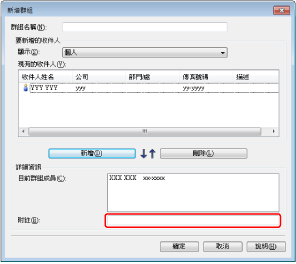 您還可以編輯已經註冊的組目的地資訊。如需更多資訊,按一下傳真驅動程式右下角的[說明],即可檢視說明。