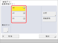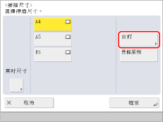 若以「直接傳送」或「手動傳送」模式傳送傳真,且將原稿放入送稿機,則不會使用指定的「掃描尺寸」設定。