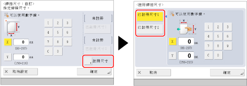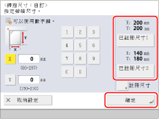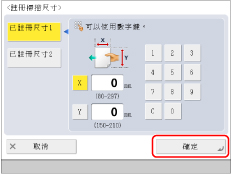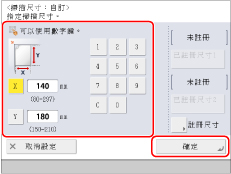若傳送傳真時螢幕上沒有與原稿尺寸相符的尺寸,請選擇與原稿寬度相符的尺寸(Y)。即使在螢幕上所選尺寸的長度(X)比原稿的長度短,本機器也會掃描原稿(長度不超過630 mm)的全部內容進行傳送。