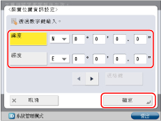 輸入安裝本機器的經度。