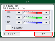 按[-]和[+]調整背景濃淡度→按[確定]。