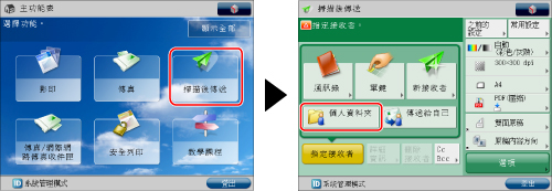→[為每個使用者註冊/編輯資訊]→[個人資料夾]管理員可以將檔案傳輸的接收者限定於一般使用者各自的個人資料夾。(請參閱「限制檔案傳送的接收者」)