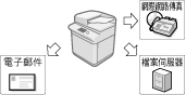 可以輕鬆掃描紙張文件並透過電子郵件或網際網路傳真將其傳送至一個或多個接收者。因此,可以提高文件交換領域的辦公效率。也可以將文件傳送至FTP、SMB和WebDAV檔案伺服器,有助於紙張文件數位化,方便資料存取和管理。