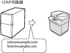 可以使用LDAP(輕量級目錄存取協定)伺服器從網路上的目錄清單搜尋接收者。然後可以將該位址指定為接收者,或將其註冊到通訊錄中。