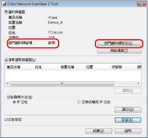 確認[部門識別碼管理]顯示[啟用]→按一下[部門識別碼設定]。