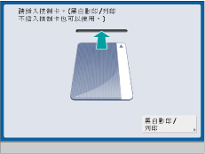 登出後進行彩色影印時,請輸入「部門識別碼」和PIN,或插入控制卡。