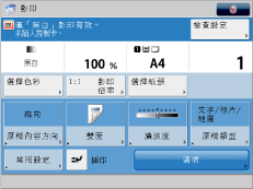 [允許黑白影印/列印工作]設定為「開啟」時,若按[黑白影印/列印]登入,在「影印基本功能」螢幕上會出現一個類似下面的訊息,提示只能進行黑白影印。