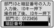 部門別ID管理を設定している場合、登録した部門IDと暗証番号を入力すると本製品が使えるようになります。