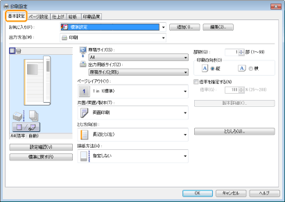 プリンタードライバー画面の表示方法については、「プリントする」または「あらかじめプリントの設定をする」を参照してください。