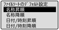 ]で<デフォルト設定の変更>または<ファイルソートのデフォルト設定>を選択して、[OK]を押します。